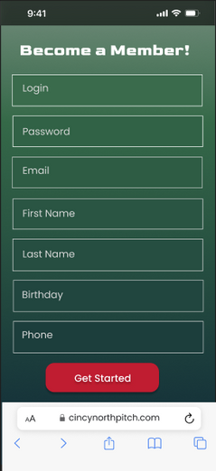 Cincy North Pitch is a mobile-inspired fan platform designed to run in a web browser, allowing fans to interact with the experience as if it were an app while using a mobile browser.